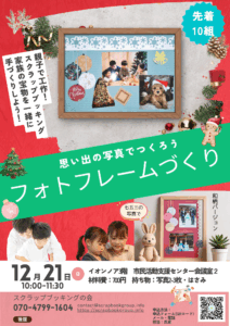 10/26にイオンノア3階 市民活動支援センター会議室にて親子イベント行いました。ハロウィンの可愛いフォトフレームづくり✨にご参加いただきありがとうございました。次の親子イベント12月21日を予定しています […]